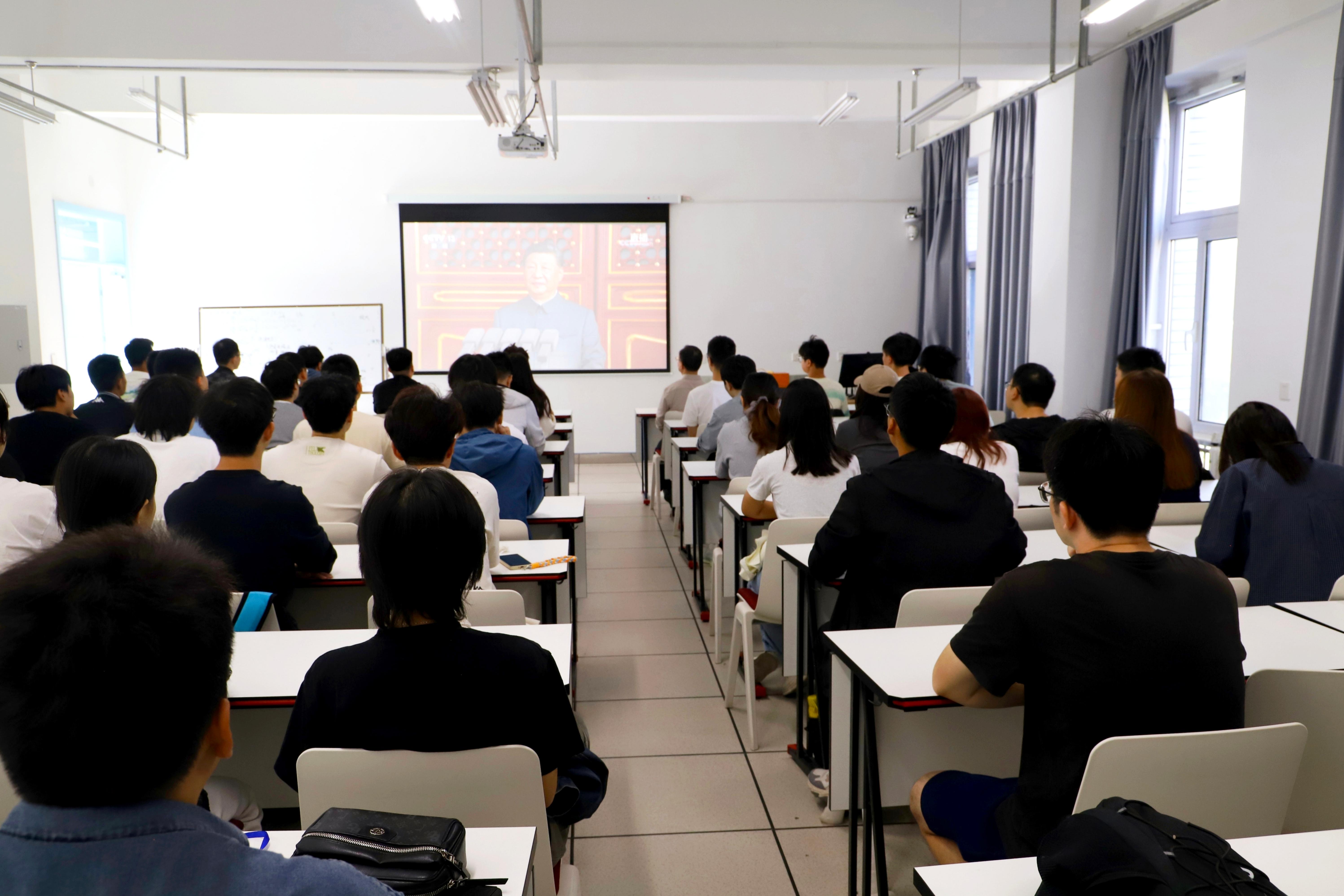 9月3日上午,纪念中国人民抗日战争暨世界反法西斯战争胜利80周年大会在京举行,中共中央总书记、国家主席、中央军委主席习近平发表重要讲话并检阅部队。永利集团304am登录组织师生在两校区集中收看大会直播,大会在学院师生中引发热议。