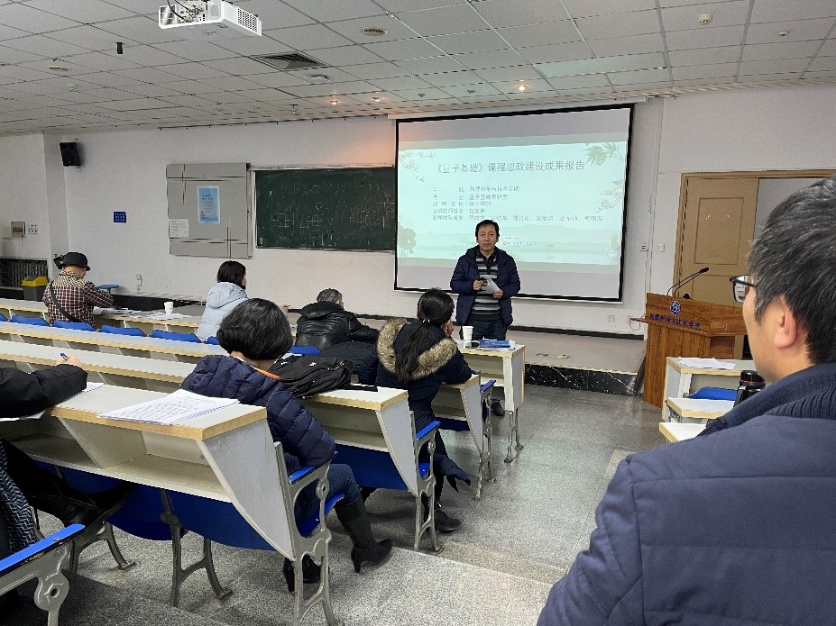 为进一步全面贯彻全国教育大会精神和高等学校课程思政建设工作会议精神,落实《高等学校课程思政建设指导纲要》和《关于新时代加强和改进思想政治工作的意见》,深化课程思政教育和创新改革,12月30日,物理科学与技术学院举行了2021年课程思政示范课程讲课比赛。学院领导王建波,教学指导委员会成员杨建红,教师代表谭磊、王颖等出席了比赛,学院共计12位教师参加了本次比赛。