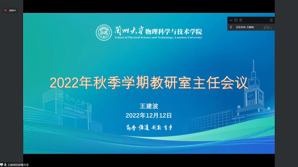 会议还讨论了2023版人才培养方案修订、课程认证、课程思政、学风建设、拔尖人才培养、教学培训等事宜。王建波指出学院应依据一流本科专业建设标准,强化专业特色,不断激发专业办学活力,推动物理学、微电子科学与工程专业建设水平的整体提升,提高人才培养质量。