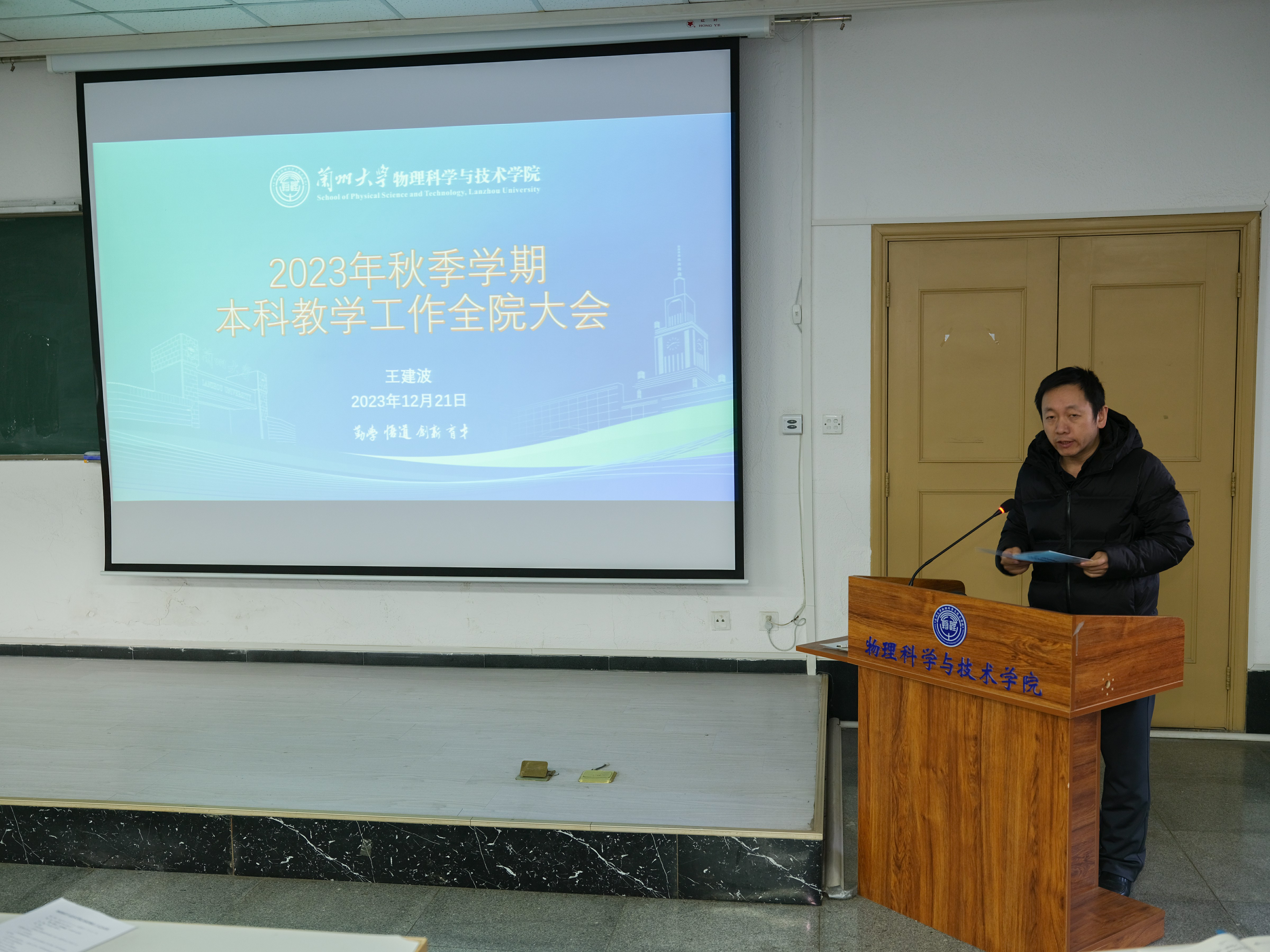 会上,王建波首先就听评课工作、期末考试、下学期课程安排、指导本科生毕业论文、2023版本科生人才培养方案落地、“十四五”规划教材建设、第四届教师教学创新大赛等近期本科教学工作进行部署,并对教学成果奖申报、一流课程建设、教学团队管理、创新创业教育、指导本科生竞赛及论文等本科教学今后重点努力方向逐一说明;随后介绍了学院目前迎评工作进度:自学院迎评工作开展以来,学院严格落实各项工作要求,仔细对照评估指标已经形成自评报告及相关支撑材料初稿,但目前学院迎评工作仍存在一些问题,希望通过此次会议召集全体教职工专题讨论,形成“人人关心评估、人人了解评估、人人参与评估”的良好工作氛围和工作机制,推动本科教育教学高质量发展。