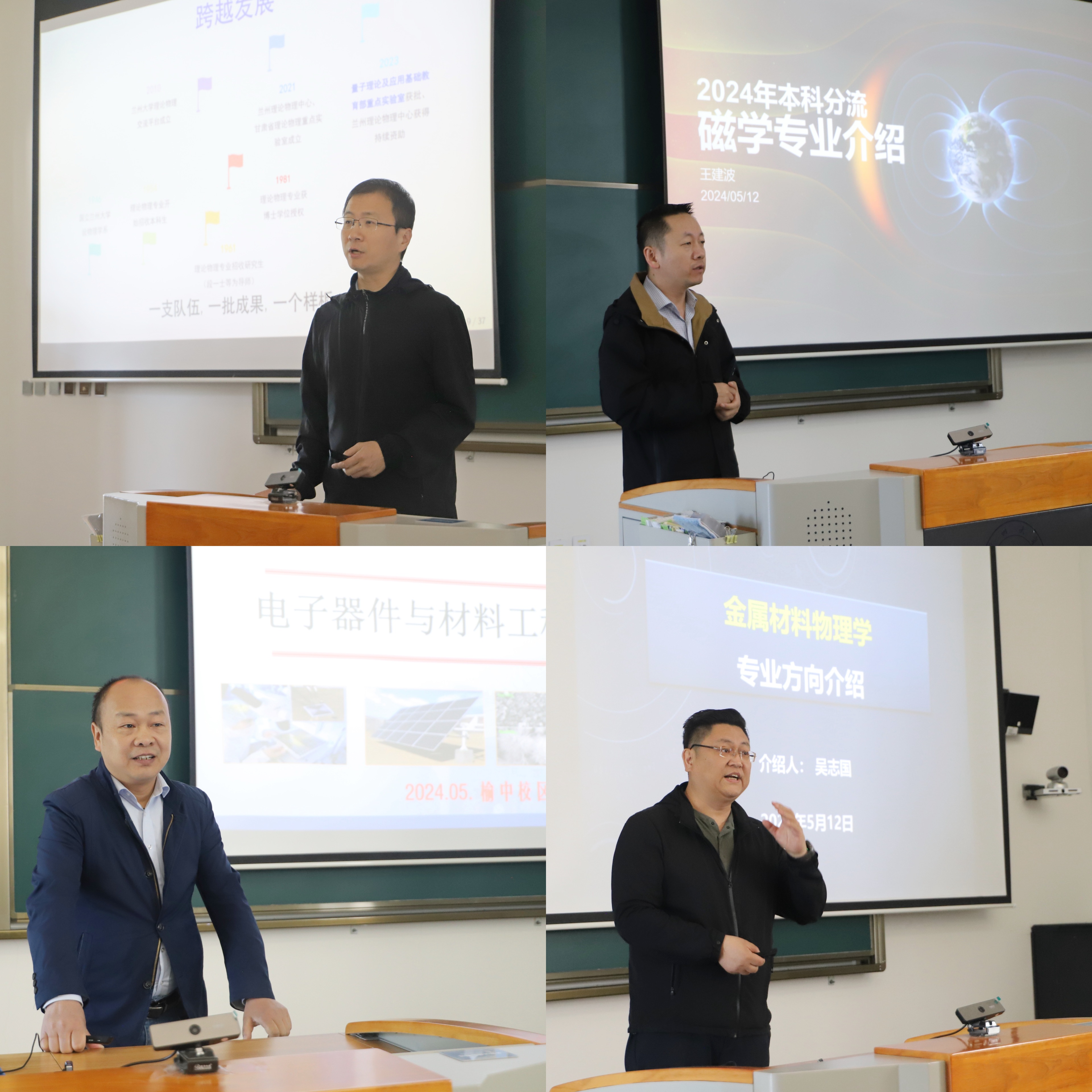 磁学方向,王建波教授围绕学院磁学专业方向的历史定位、师资队伍、研究团队、科研条件等展开介绍,并介绍了磁学专业的课程设置和研究方向,激发了学生们对磁学研究的兴趣。