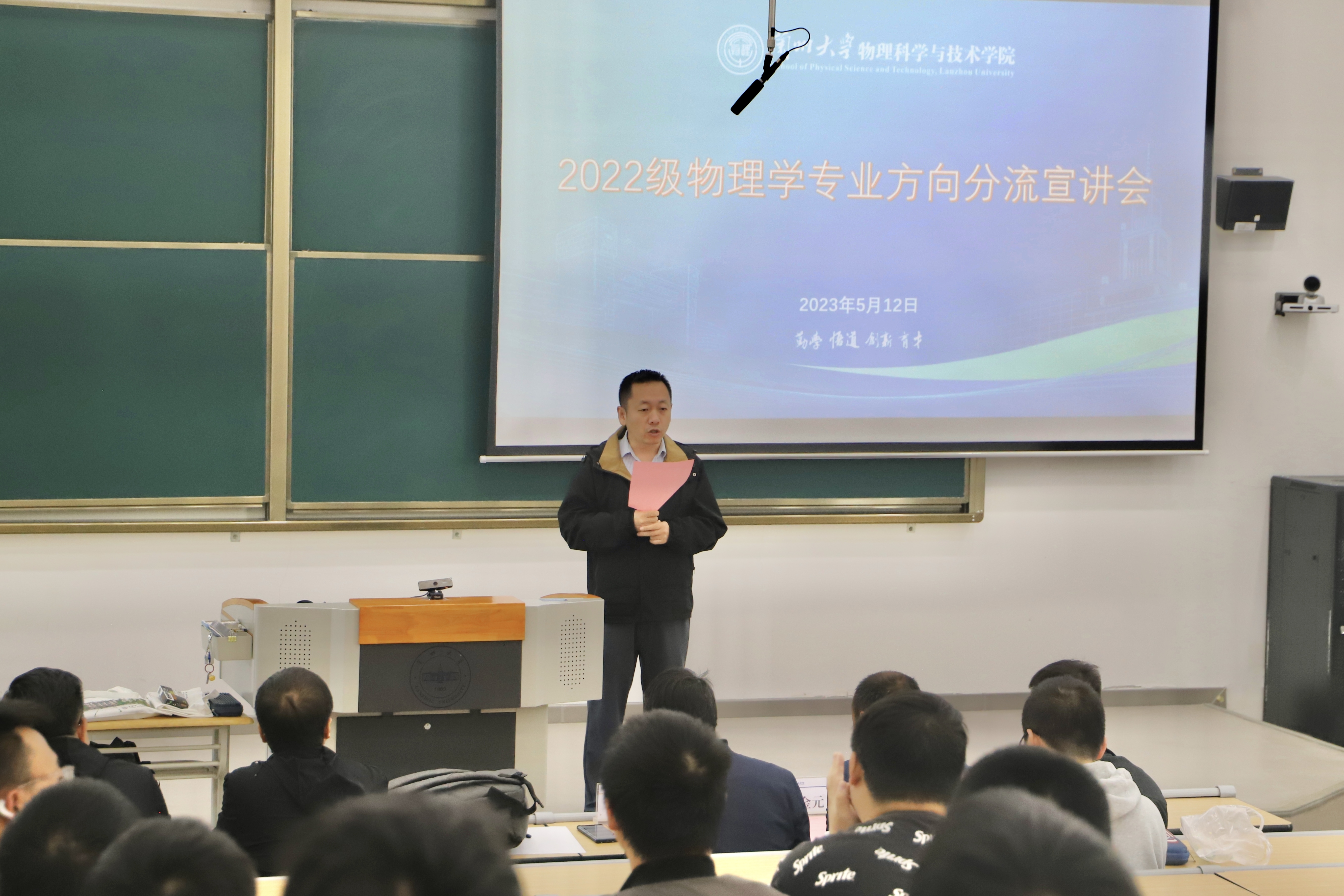 5月12日上午,永利集团304am登录在榆中校区秦岭堂召开了2022级本科生物理学专业方向分流宣讲会,旨在帮助同学们更好地了解物理学专业的不同方向,明确未来的学习和发展目标,会议由副院长王建波主持。
