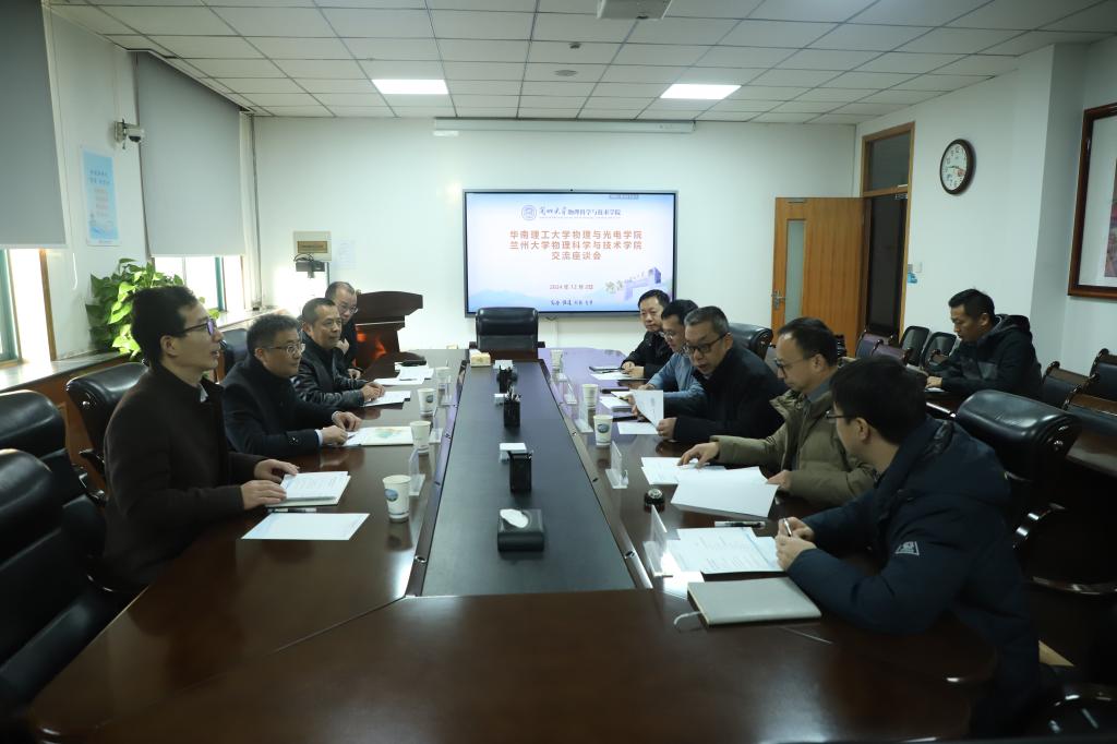 为促进学术研究以及人才培养等方面的深入交流与合作,12月2日上午,华南理工大学物理与光电学院党委书记向兴华、副院长文德华、党委副书记陈华强、冯兆庆教授一行前来永利集团304am登录交流访问,学院党委书记吴国军、院长刘翔、副院长李星波、王建波、刘玉孝和办公室相关工作人员参加交流会。