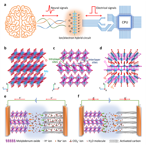 图1. 面向人机交互的氧化钼基电容式离子二极管