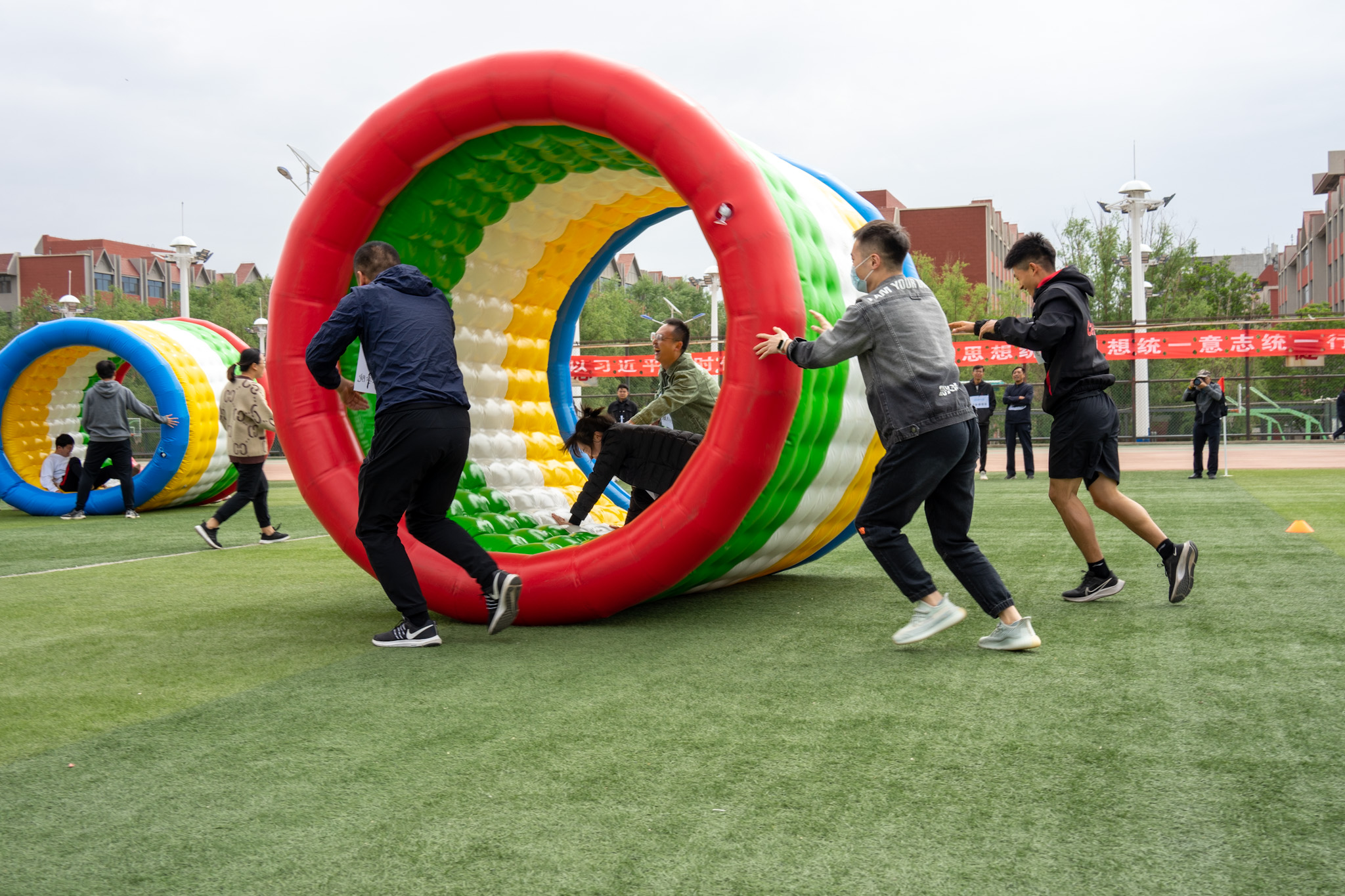 比赛开始后,操场上到处充满欢声笑语,大家以极高的热情参与了本次活动。在比赛过程中,大家个个全力投入,课堂上温文尔雅的老师们,到了赛场上变得活力四射。既赛出了个人的风采,又赛出了集体的凝聚力。
