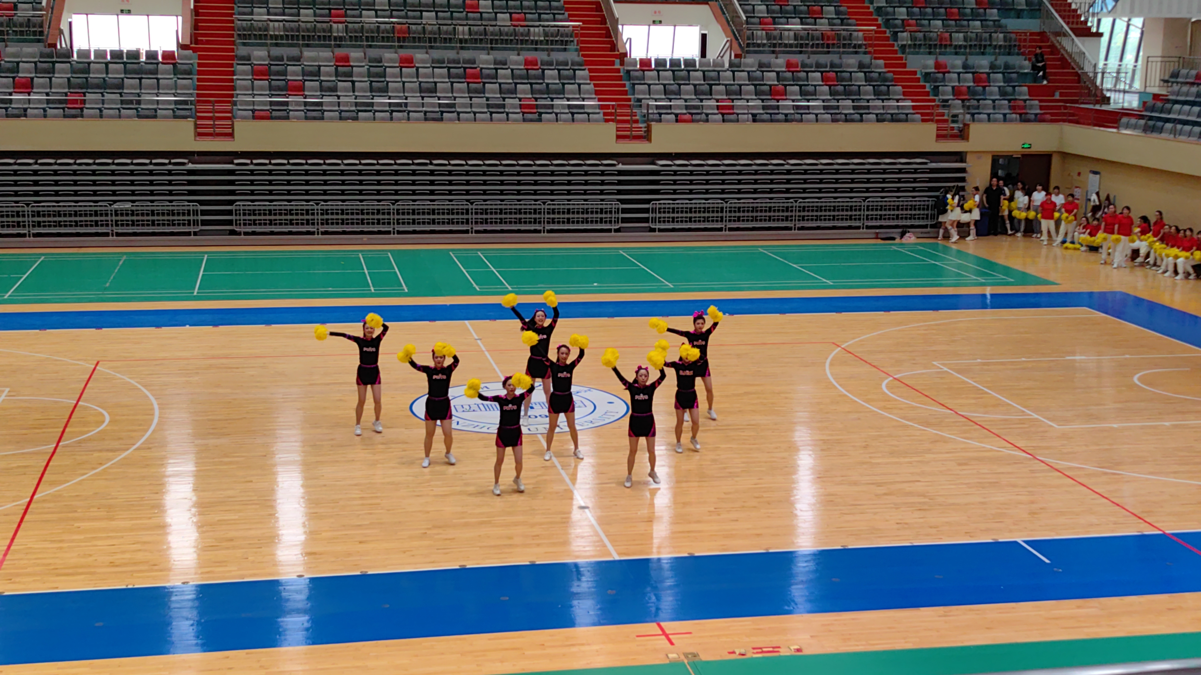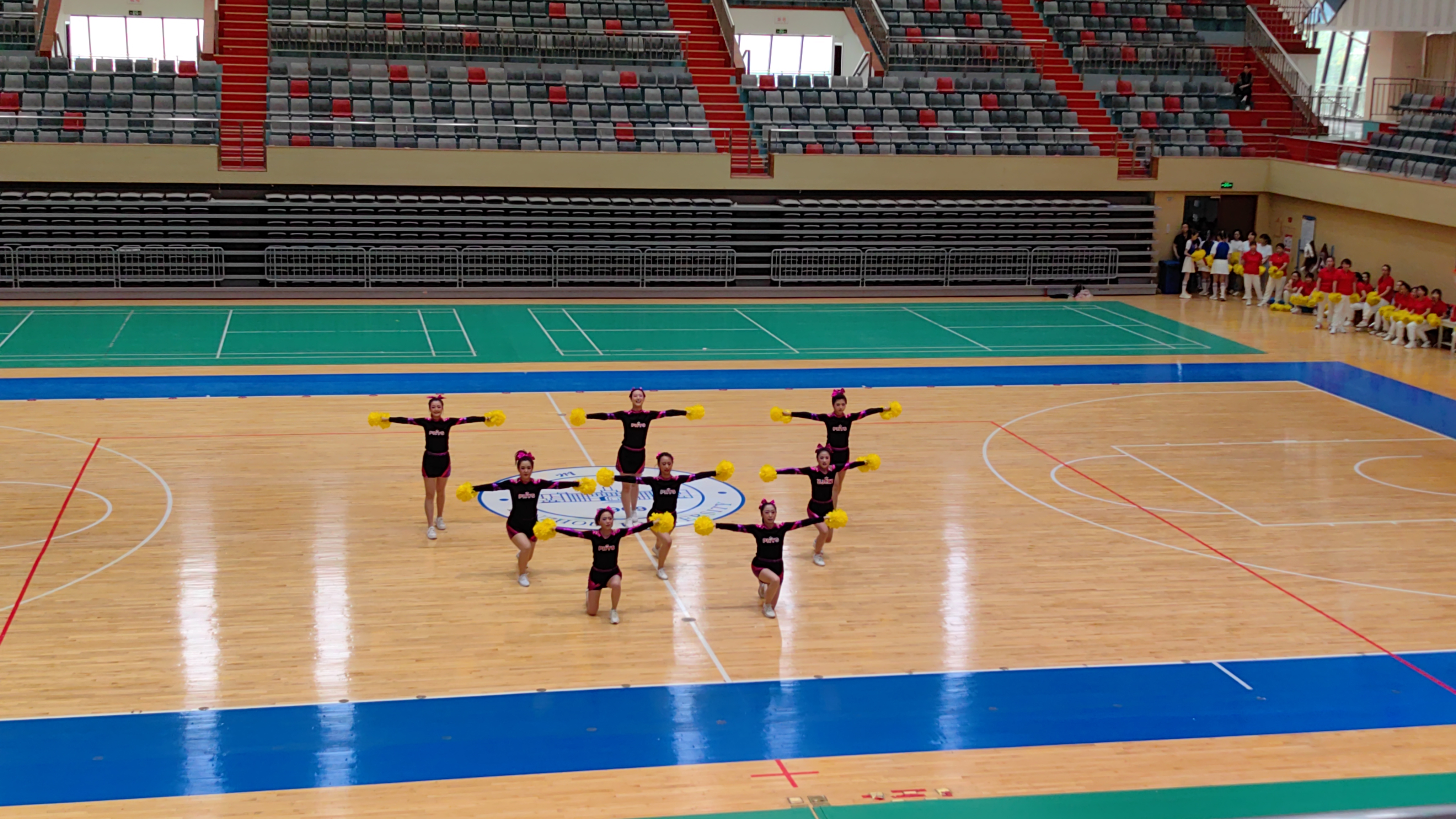 轻快的舞步伴随动感的音乐,欢快明朗、充满活力的啦啦操令人耳目一新,热烈的气氛让体育馆变为一个闪亮的舞台。