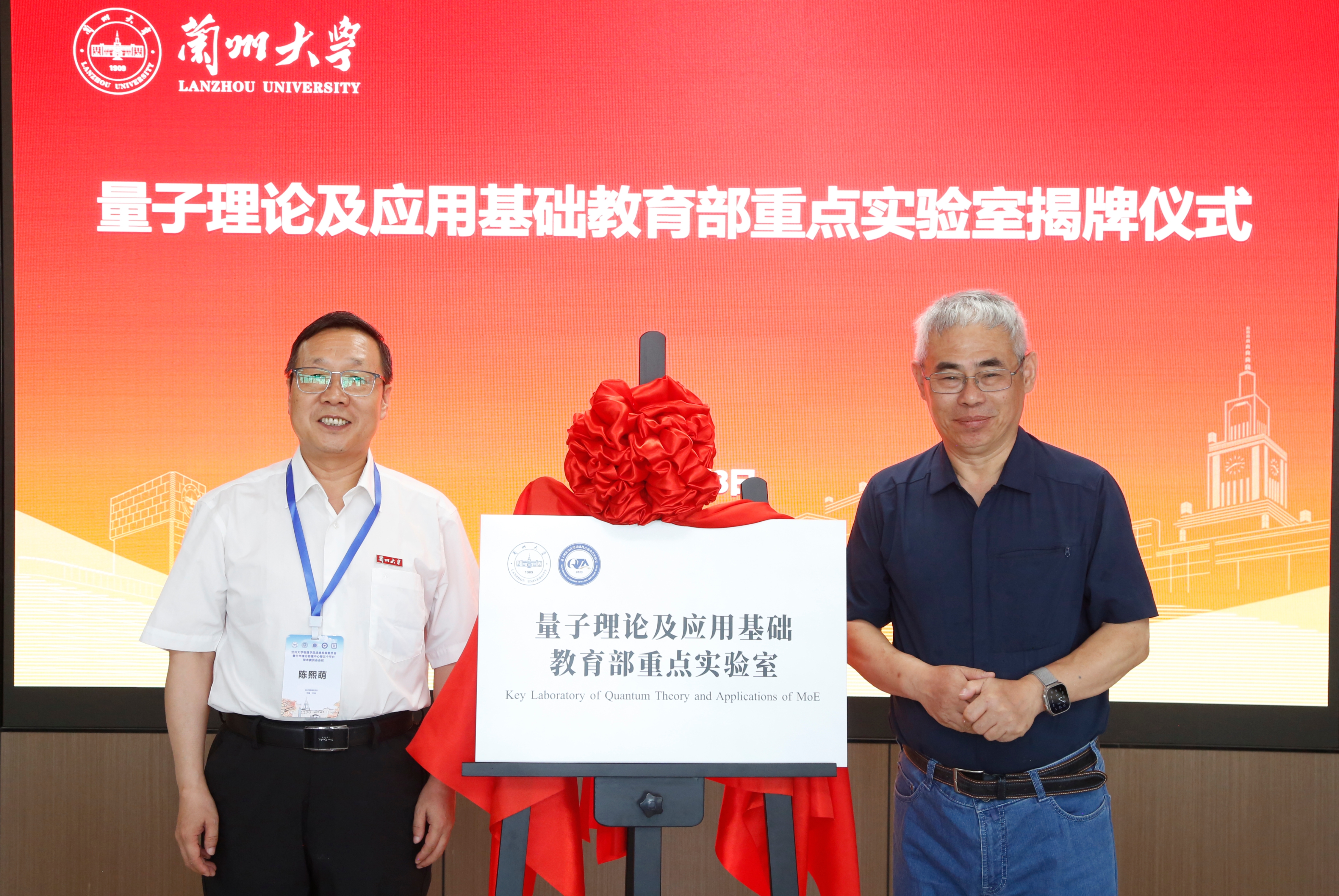 孙昌璞院士和陈熙萌副校长共同为量子理论及应用基础教育部重点实验室揭牌。