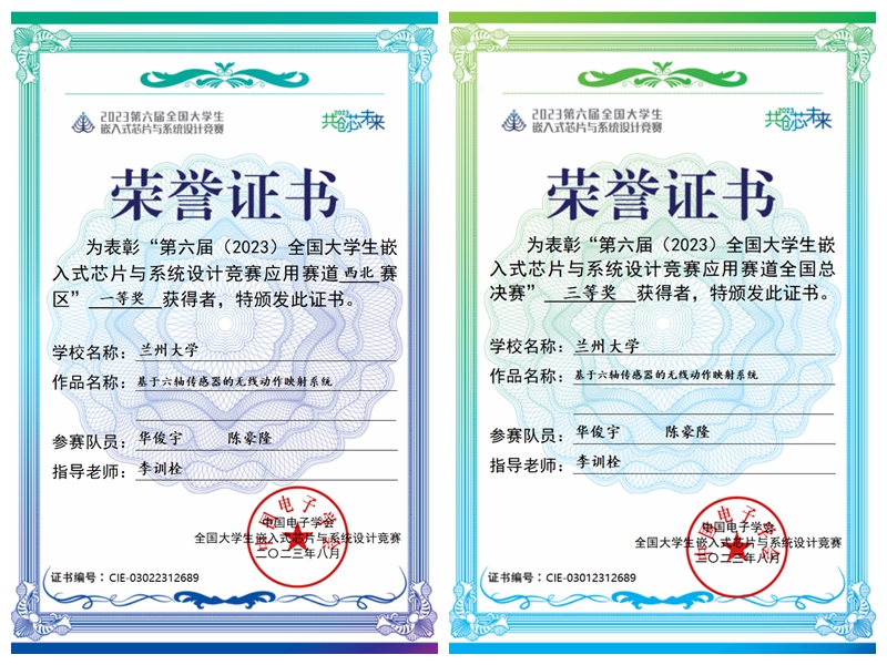 由永利集团304am登录2021级本科生陈豪隆和信息科学与技术学院2021级本科生华俊宇组成的“野生钢铁侠”队,在李训栓老师的精心指导下,共同努力、反复打磨、精益求精,不断试错和优化项目,呈现出4个高质量参赛作品,最终荣获佳绩。通过本次比赛,队员们深入学习了陀螺仪数据解析和收集、无线传输模块数据传输、3D建模和3D打印等知识,加深了对嵌入式设备的认识,熟悉了芯片设计、软硬件适配、系统优化、应用方案设计等不同技术层面的相关知识和技能,提高了解决实际问题和自主探究的能力。