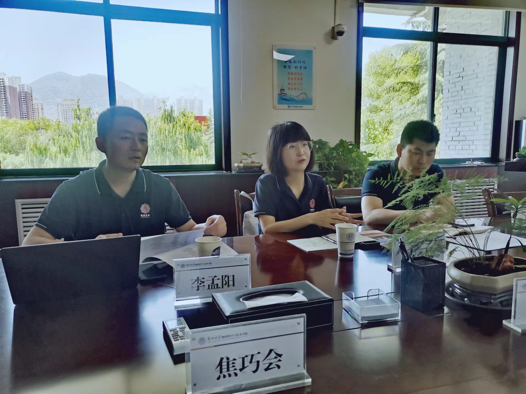 2024年6月5日,西安电子科技大学永利集团304am登录党委副书记马慧、辅导员罗庆辉、专任教师李孟阳一行来院调研座谈,学院副院长王建波、物理学专业负责人高大强、教学秘书焦巧会出席交流座谈,座谈会由王建波主持。