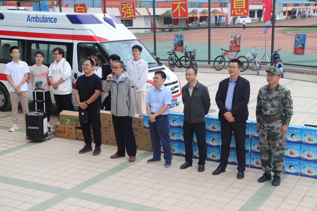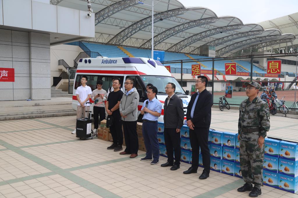 活动最后,老师们向同学们发放了慰问品,参加活动的师生合影留念。