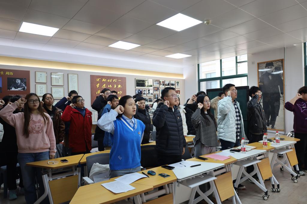 入团仪式在嘹亮的国歌声中开始。张晓晓宣读了新发展团员名单,对新发展团员表示祝贺,希望同学们继承和发扬段一士先生的宝贵精神,从段一士先生的故事中汲取力量、振奋精神,不断坚定共产主义远大理想,为共产主义事业而奋斗。参加活动的老师、学生党员、优秀团员为新团员颁发了团徽徽章和团员证。新发展团员进行了入团宣誓,老团员重温了入团誓词。