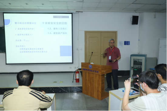 安全健康教育中心教员龙杨军、安全管理工作组组长周保范、组员唐丽云分别就“永利集团304am登录消防安全状况和防范措施”、“永利集团304am登录实验室安全总体状况和防范措施”、“实验室保密安全”等进行了讲解。