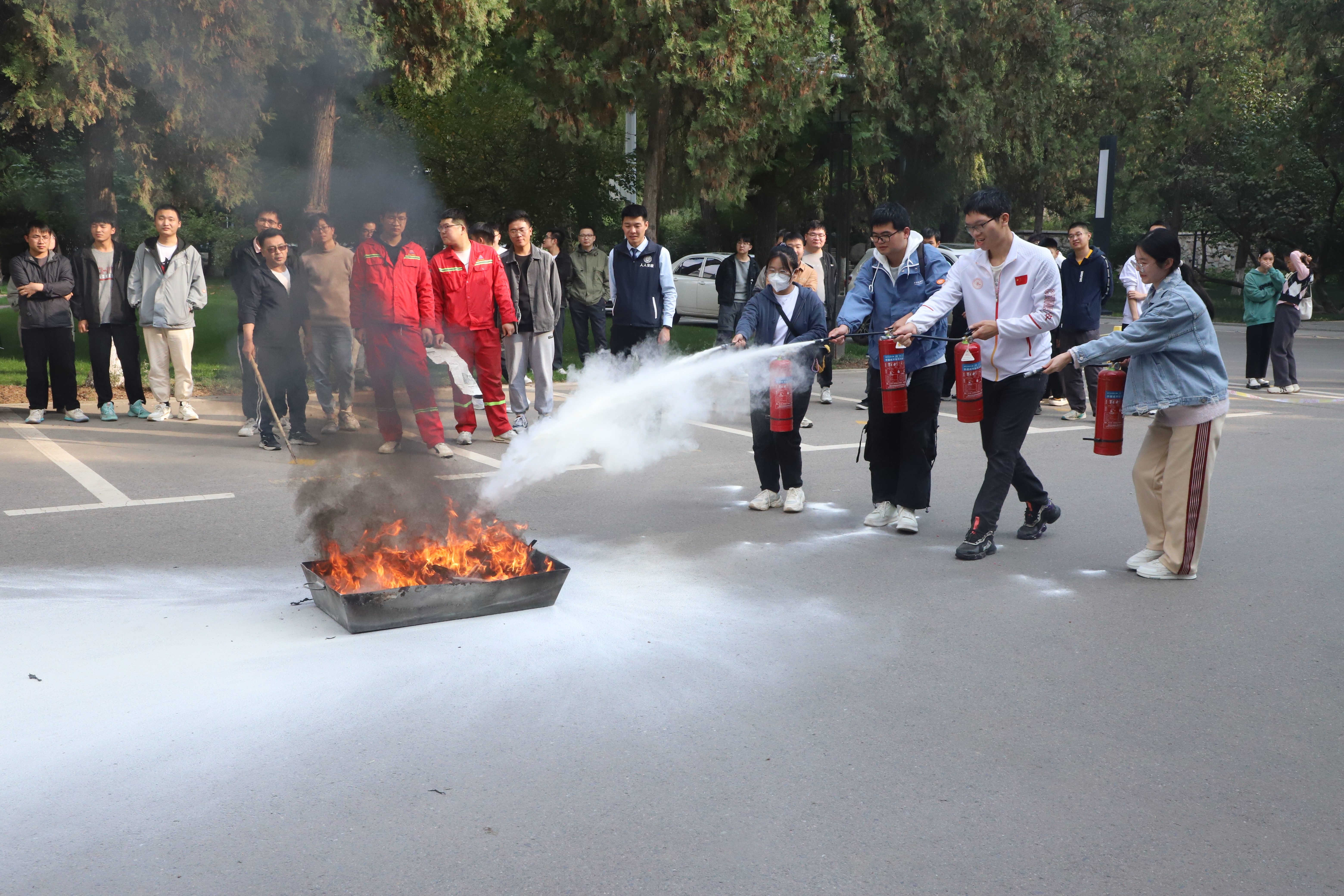 永利集团304am登录2023级全体研究生新生和新入职教工参加了培训讲座。讲座结束后,进行了疏散逃生和消防培训演练,格致楼全体师生同时参与。活动采用“演习烟雾发生器”模拟火灾烟雾场面,师生在消防警报和演习烟雾环境中,按照格致楼预定疏散路线及逃生防护要求迅速有序撤离。安全警报解除后,在格致楼外广场,吴永强教员就灭火器的使用进行了讲解和培训,学生使用灭火器对演习火堆进行了现场灭火操作。