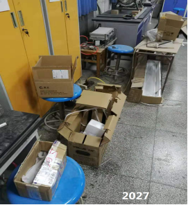 固定插线板在高处,及时处理实验室废旧纸箱 |