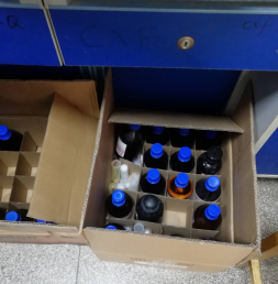 格致楼4043实验室(责任人:王育华),用试剂瓶装废液,未倒入废液桶,离心废液未及时处理,已凝固,存在安全隐患。