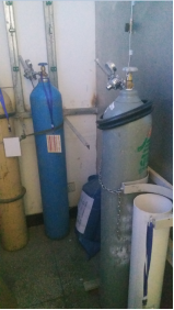 图6. 格致楼3035,一个氩气瓶和一个氧气瓶不按规定安装防震胶圈。 |