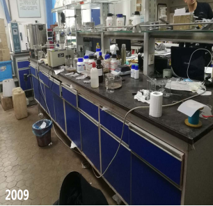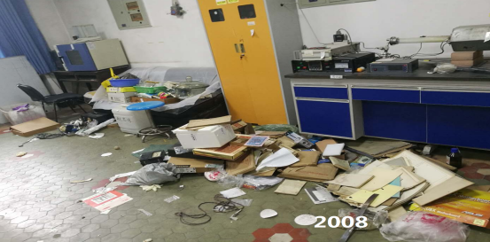 1. 8-9月份,学院部分实验室往理工楼搬迁,个别实验室搬迁后不能及时清理打扫,垃圾多、卫生很差。 2.存在插线板直接放置在地面的现象。