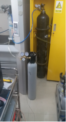 一个氩气瓶和一个氧气瓶未套防震胶圈 |